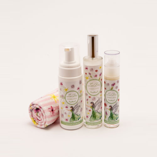 - Brisačka za obraz – Na eni strani potiskana z vilinko LaBri in cvetlicami, na drugi strani bela. Material: na potiskani strani 100% mikrofibra, na beli strani 100% bombaž. Velikost 50 cm × 30 cm.