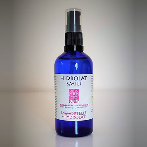 Smilj ima prav poseben vonj. Ne moremo reči, da vam bo čudovito dišal, vsekakor pa bo čudovit na vaši koži. Hidrolat smilja je primeren za nego vseh tipov kože, še posebej je priporočljiv za nego zrele, občutljive kože, ali kože, ki je nagnjena k nepravilnostim. Dobro deluje tudi proti suhi, napeti koži, saj jo vlaži in ji vrača zdrav sijaj. Sestavine iz kontrolirane ekološke pridelave.